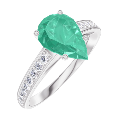 Ring Weißgold 750/-(18Kt) - Smaragd Tropfen 1 Karat - Fassung Diamant