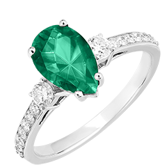 « L'ATELIER » NR. 169427Ring Weißgold 750/-(18Kt) - Smaragd Tropfen 1 Karat - Seitliche Steine Diamant - Fassung Diamant