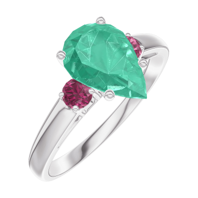 « L'ATELIER » NR. 169443Ring Weißgold 750/-(18Kt) - Smaragd Tropfen 1 Karat - Seitliche Steine Rubin