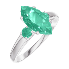 Ring Weißgold 750/-(18Kt) - Smaragd Marquise 1 Karat - Seitliche Steine Smaragd