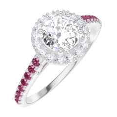 Ring Weißgold 375/-(9Kt) - Diamant rund 0.5 Karat - Halo Diamant - Fassung Rubin