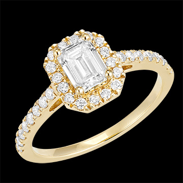 « L'ATELIER » NR. 170101Ring Gelbgold 750/-(18Kt) - Diamant Rechteckig 0.5 Karat - Halo Diamant - Fassung Diamant 4.9