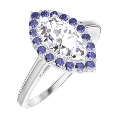 « L'ATELIER » Nº170276Ring Weißgold 375/-(9Kt) - Diamant Marquise 0.5 Karat - Halo Blauer Saphir