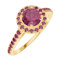 Ring Gelbgold 750/-(18Kt) - Rubin rund 0.5 Karat - Halo Rubin - Fassung Rubin