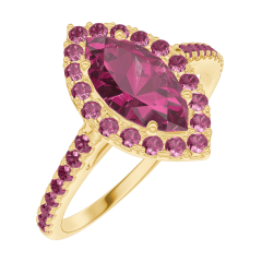 Ring Gelbgold 750/-(18Kt) - Rubin Marquise 0.5 Karat - Halo Rubin - Fassung Rubin