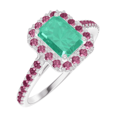 « L'ATELIER » NR. 170988Ring Weißgold 375/-(9Kt) - Smaragd Rechteckig 0.5 Karat - Halo Rubin - Fassung Rubin 4.9