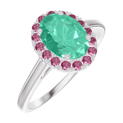 « L'ATELIER » Nº171028Ring Weißgold 375/-(9Kt) - Smaragd Oval 0.5 Karat - Halo Rubin 4.8 (12)