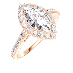 Ring Roségold 750/-(18Kt) - Labordiamant Marquise 0.5 Karat - Halo Labordiamant - Fassung Labordiamant