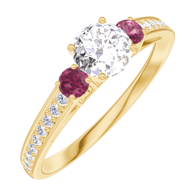 « L'ATELIER » Nº180045Ring Gelbgold 750/-(18Kt) - Labordiamant rund 0.3 Karat - Seitliche Steine Rubin - Fassung Labordiamant 4.8