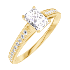 Ring Gelbgold 375/-(9Kt) - Labordiamant Rechteckig 0.3 Karat - Fassung Labordiamant