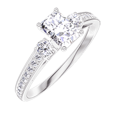 Ring Weißgold 375/-(9Kt) - Labordiamant Rechteckig 0.3 Karat - Seitliche Steine Labordiamant - Fassung Labordiamant
