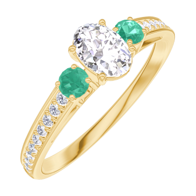 « L'ATELIER » Nº180385Ring Gelbgold 750/-(18Kt) - Labordiamant Oval 0.3 Karat - Seitliche Steine Smaragd - Fassung Labordiamant 5