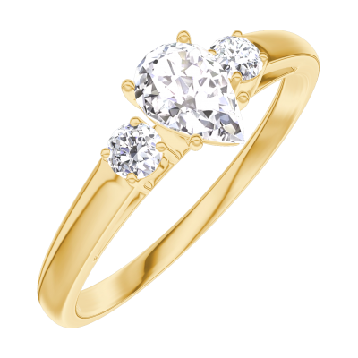 « L'ATELIER » Nº180422Ring Gelbgold 375/-(9Kt) - Labordiamant Tropfen 0.3 Karat - Seitliche Steine Labordiamant