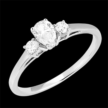 « L'ATELIER » NR. 180424Ring Weißgold 375/-(9Kt) - Labordiamant Tropfen 0.3 Karat - Seitliche Steine Labordiamant