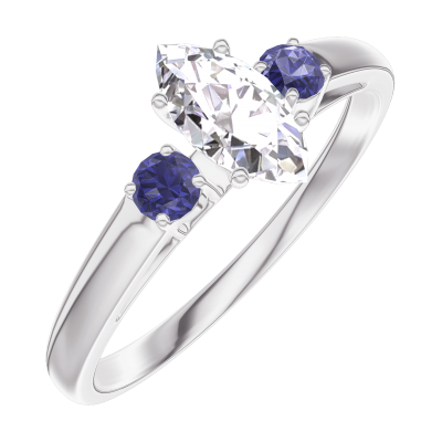 « L'ATELIER » NR. 180564Ring Weißgold 375/-(9Kt) - Labordiamant Marquise 0.3 Karat - Seitliche Steine Blauer Saphir
