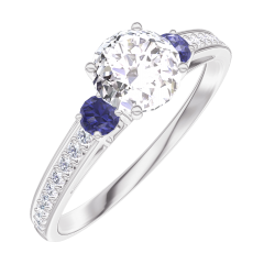 Ring Weißgold 750/-(18Kt) - Labordiamant rund 0.5 Karat - Seitliche Steine Blauer Saphir - Fassung Labordiamant