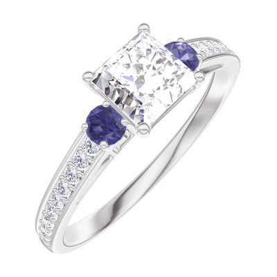 « L'ATELIER » Nº182567Ring Weißgold 750/-(18Kt) - Labordiamant Prinzess 0.5 Karat - Seitliche Steine Blauer Saphir - Fassung Labordiamant