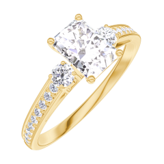 Ring Gelbgold 375/-(9Kt) - Labordiamant Rechteckig 0.5 Karat - Seitliche Steine Labordiamant - Fassung Labordiamant