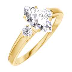 Ring Gelbgold 750/-(18Kt) - Labordiamant Marquise 0.5 Karat - Seitliche Steine Labordiamant