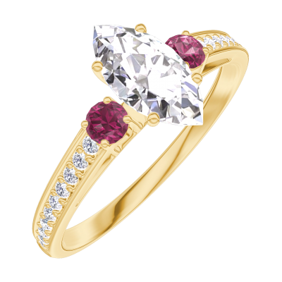 « L'ATELIER » Nº182945Ring Gelbgold 750/-(18Kt) - Labordiamant Marquise 0.5 Karat - Seitliche Steine Rubin - Fassung Labordiamant