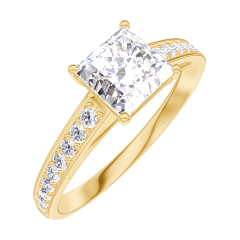 Ring Gelbgold 750/-(18Kt) - Labordiamant Prinzess 0.7 Karat - Fassung Labordiamant