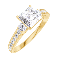 Ring Gelbgold 750/-(18Kt) - Labordiamant Prinzess 0.7 Karat - Seitliche Steine Labordiamant - Fassung Labordiamant