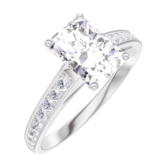 Ring Weißgold 375/-(9Kt) - Labordiamant Rechteckig 0.7 Karat - Fassung Labordiamant