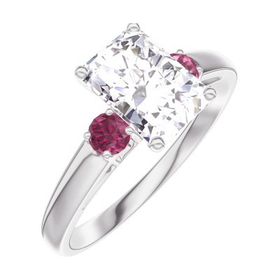 « L'ATELIER » Nº185043Ring Weißgold 750/-(18Kt) - Labordiamant Rechteckig 0.7 Karat - Seitliche Steine Rubin