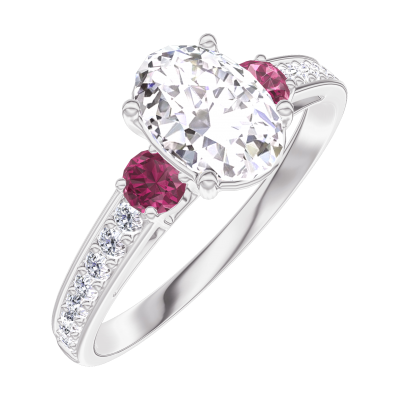 « L'ATELIER » Nº185148Ring Weißgold 375/-(9Kt) - Labordiamant Oval 0.7 Karat - Seitliche Steine Rubin - Fassung Labordiamant