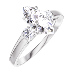 Ring Weißgold 375/-(9Kt) - Labordiamant Marquise 0.7 Karat - Seitliche Steine Labordiamant