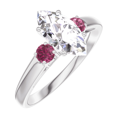 « L'ATELIER » NR. 185344Ring Weißgold 375/-(9Kt) - Labordiamant Marquise 0.7 Karat - Seitliche Steine Rubin