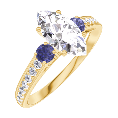 « L'ATELIER » NR. 185365Ring Gelbgold 750/-(18Kt) - Labordiamant Marquise 0.7 Karat - Seitliche Steine Blauer Saphir - Fassung Labordiamant