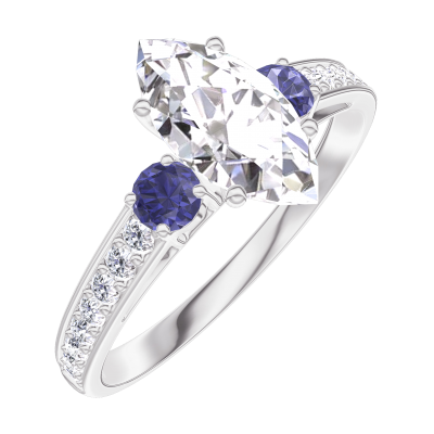 « L'ATELIER » NR. 185367Ring Weißgold 750/-(18Kt) - Labordiamant Marquise 0.7 Karat - Seitliche Steine Blauer Saphir - Fassung Labordiamant