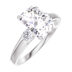 Ring Weißgold 375/-(9Kt) - Labordiamant Rechteckig 1 Karat - Seitliche Steine Labordiamant