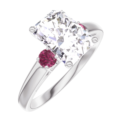 « L'ATELIER » Nº187443Ring Weißgold 750/-(18Kt) - Labordiamant Rechteckig 1 Karat - Seitliche Steine Rubin 4.6