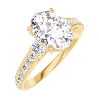 « L'ATELIER » NR. 187525Ring Gelbgold 750/-(18Kt) - Labordiamant Oval 1 Karat - Seitliche Steine Labordiamant - Fassung Labordiamant 4.8