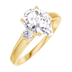 Ring Gelbgold 750/-(18Kt) - Labordiamant Tropfen 1 Karat - Seitliche Steine Labordiamant