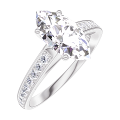 Ring Weißgold 375/-(9Kt) - Labordiamant Marquise 1 Karat - Fassung Labordiamant