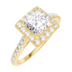 Ring Gelbgold 750/-(18Kt) - Labordiamant Prinzess 0.5 Karat - Halo Labordiamant - Fassung Labordiamant