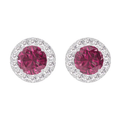 « L'ATELIER » NR. 201160Ohrringe Weißgold 375/-(9Kt) - Rubin rund 0.3 Karat (2 X) - Halo Diamant 5