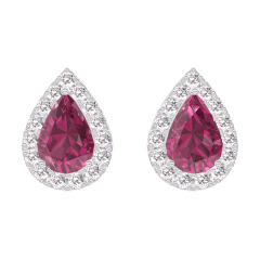« L'ATELIER » NR. 201224Ohrringe Weißgold 375/-(9Kt) - Rubin Tropfen 0.3 Karat (2 X) - Halo Diamant