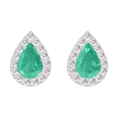 Ohrringe Weißgold 375/-(9Kt) - Smaragd Tropfen 0.3 Karat (2 X) - Halo Diamant