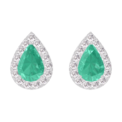 « L'ATELIER » NR. 201416Ohrringe Weißgold 375/-(9Kt) - Smaragd Tropfen 0.3 Karat (2 X) - Halo Diamant