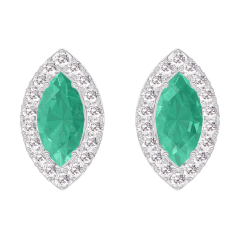 Ohrringe Weißgold 750/-(18Kt) - Smaragd Marquise 0.3 Karat (2 X) - Halo Diamant