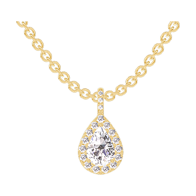 « L'ATELIER » Nº203237Anhänger Gelbgold 750/-(18Kt) - Diamant Tropfen 0.3 Karat - Halo Diamant - Fassung Diamant - Kette Ankerkette