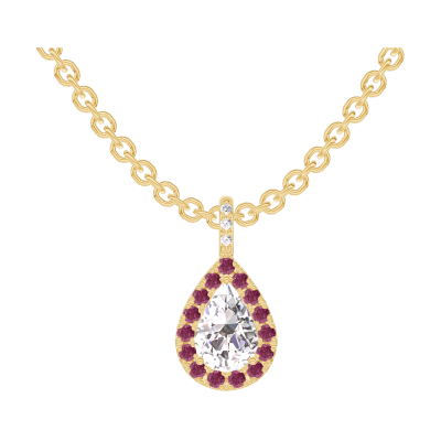 « L'ATELIER » Nº203286Anhänger Gelbgold 375/-(9Kt) - Diamant Tropfen 0.3 Karat - Halo Rubin - Fassung Diamant - Kette Ankerkette