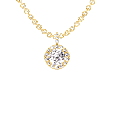 « L'ATELIER » Nº203621Anhänger Gelbgold 750/-(18Kt) - Labordiamant rund 0.3 Karat - Halo Labordiamant - Fassung Labordiamant - Kette Ankerkette 4.3