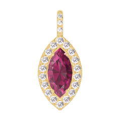 Anhänger Gelbgold 750/-(18Kt) - Rubin Marquise 0.3 Karat - Halo Diamant - Fassung Diamant - Keine Kette