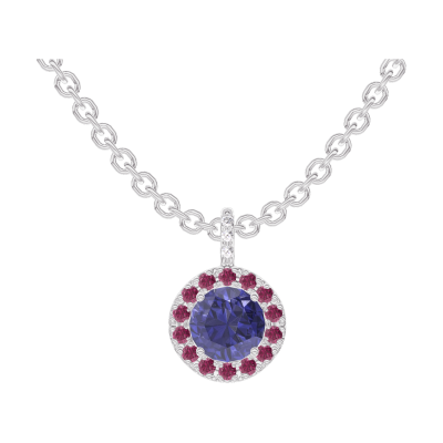 « L'ATELIER » Nº205975Anhänger Weißgold 750/-(18Kt) - Blauer Saphir rund 0.3 Karat - Halo Rubin - Fassung Diamant - Kette Ankerkette 4.3 (3)