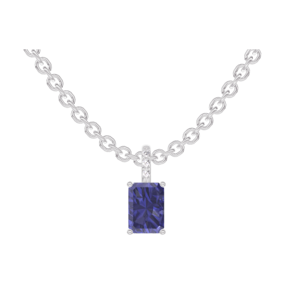 « L'ATELIER » Nº206263Anhänger Weißgold 750/-(18Kt) - Blauer Saphir Rechteckig 0.3 Karat - Fassung Diamant - Kette Ankerkette
